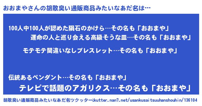 | 意味不明あだ名 | 『ペロリンおおまや』『自称おおまや』 |