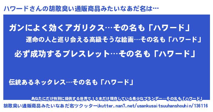 | ヒーロー風カッコイイあだ名 | 『スーパーハワード』『仮面ハワダー』 |