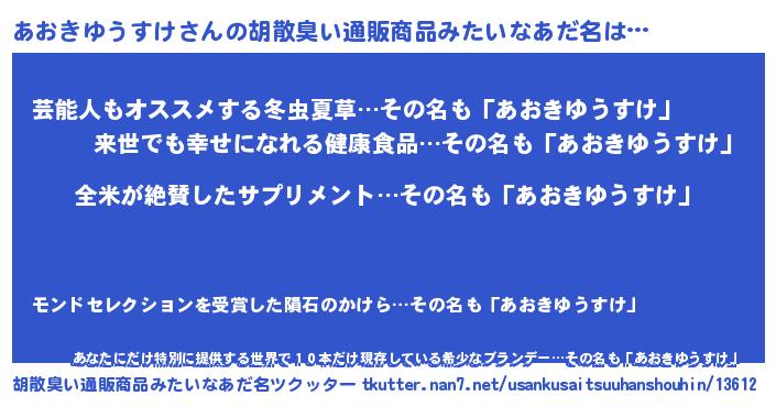 | ヘコむあだ名 | 『あおを』『あおきゆうすけ(遠い目)』 |