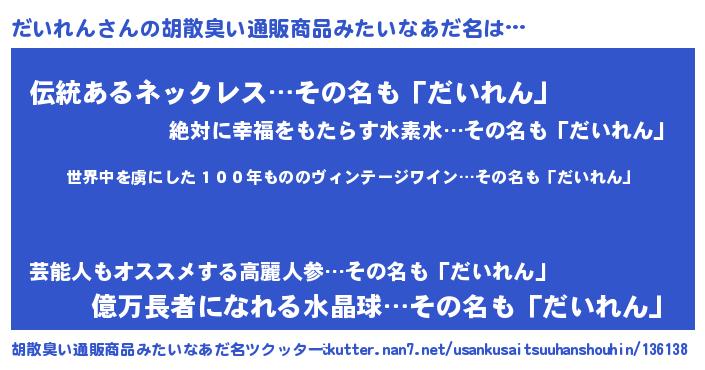 | 意味不明あだ名 | 『住所不定無職だいれん(12歳)』 |