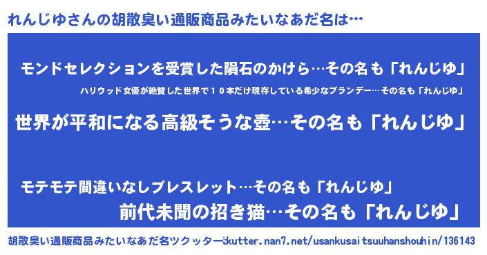 | 欧米人風あだ名 | 『れんじゆクリステル』 |