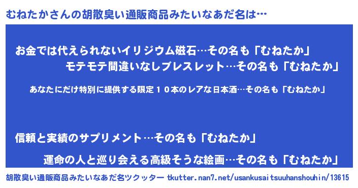 | 意味不明あだ名 | 『住所不定無職むねたか(50歳)』 |
