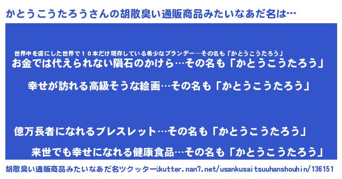 | ファンタジー風あだ名 | 『エターナルカトウコウタロウー』 |