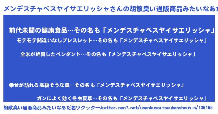 メンデスチャベスヤイサエリッシャさんの胡散臭い通販商品みたいなあだ名をツクッター!