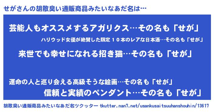 | ピコ太郎風あだ名 | 『ピコセ郎』『セガ史郎』『ピセ八郎』 |