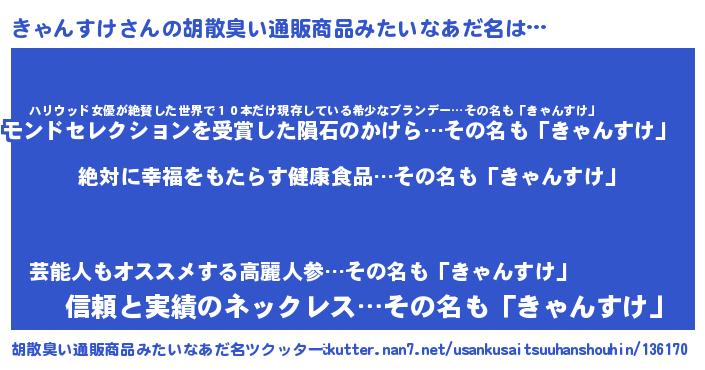 | ヘコむあだ名 | 『きゃんすけ(笑)』『きゃを』 |