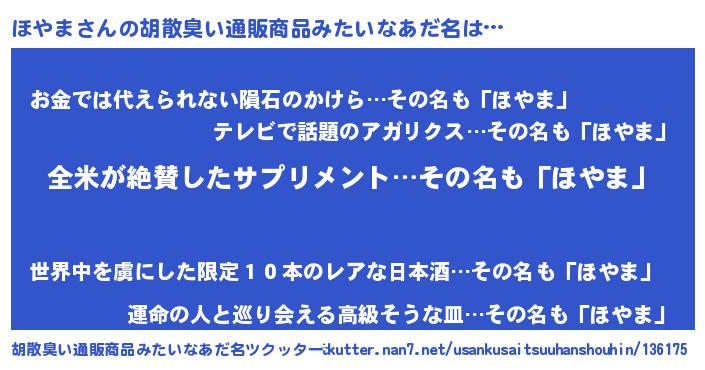 | ヘコむあだ名 | 『ほやお』『酢こんぶ』『ほやま(笑)』 |