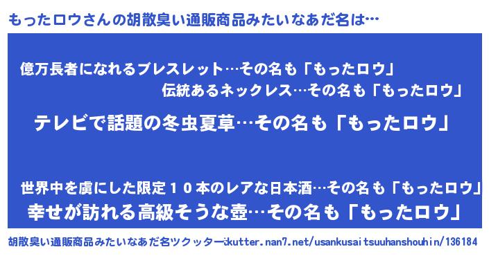 | 意味不明あだ名 | 『自称もったロウ』『ペロリンもったロウ』 |