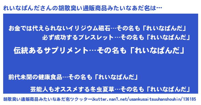 | ヘコむあだ名 | 『れいを』『れいもー』『レバニラ』 |
