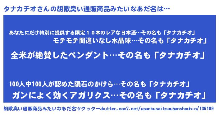 | 男性向けラノベタイトル風あだ名 | 『タナカチオに滅ぼされるだけの簡単なお仕事です』 |