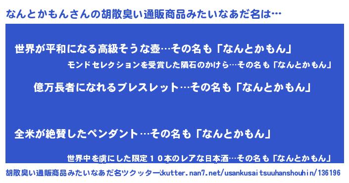 | 肩書あだ名 | 『なんとかもん大佐』『なんとかもんCEO』 |