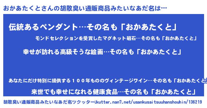 | ポケモン風あだ名 | 『オカアダネ』『ヒオカアタクト』 |