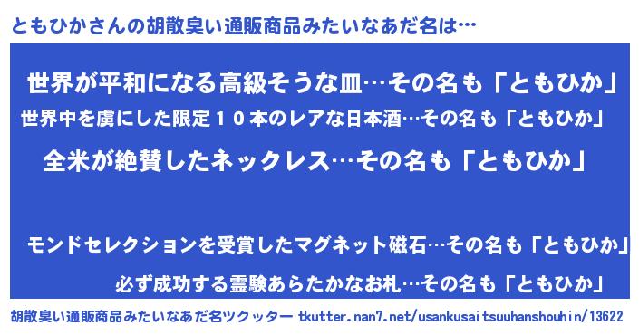 | ヘコむあだ名 | 『とも太郎』『豆乳』『ともふぇ~』 |