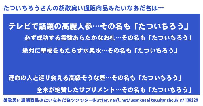 | 男性向けラノベタイトル風あだ名 | 『緋弾のタツイチロウ』 |