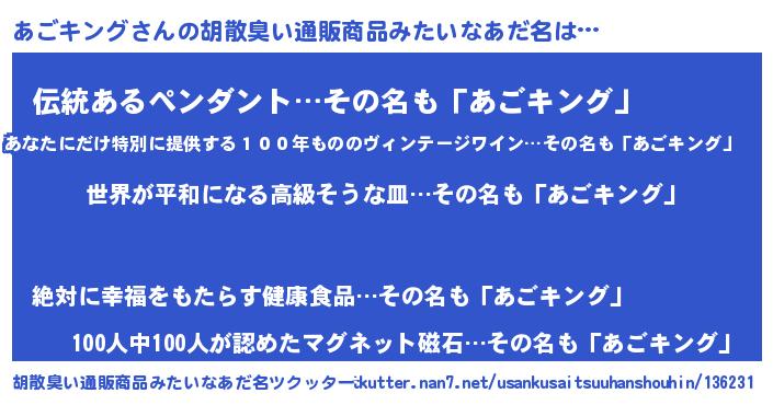 | ヒーロー風カッコイイあだ名 | 『ウルトラあごキングマン』 |