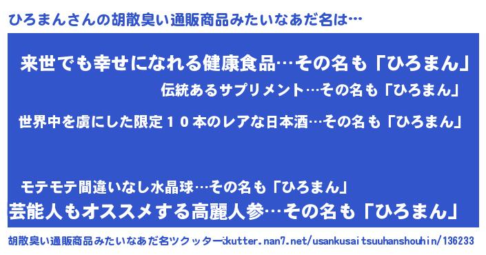 ひろまんさんの胡散臭い通販商品みたいなあだ名をツクッター!