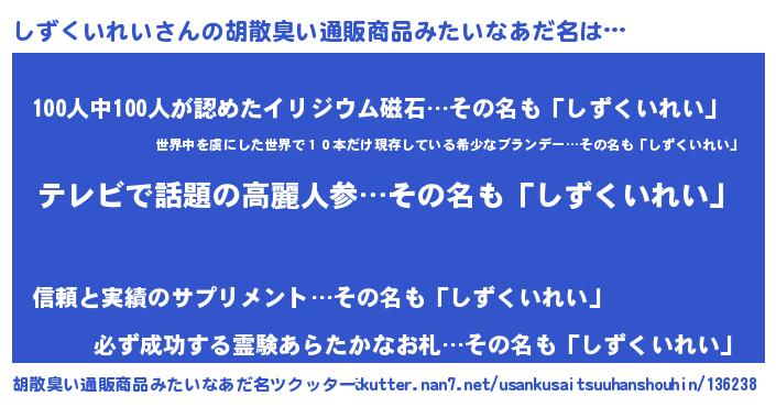 | ヘコむあだ名 | 『しずにー』『しずっぺ』『レバニラ』 |