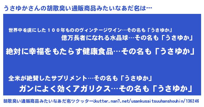 | 男性向けラノベタイトル風あだ名 | 『うさゆかという概念が存在しない退屈な世界 』 |