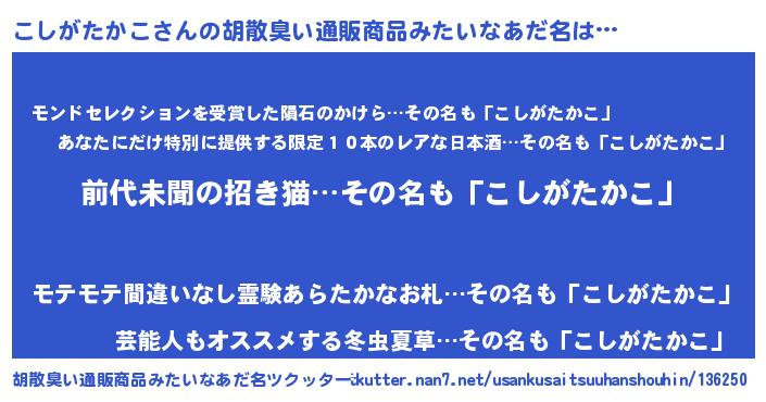 | 意味不明あだ名 | 『永久保存こしがたかこ』 |