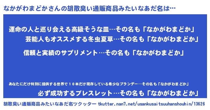 | 男性向けラノベタイトル風あだ名 | 『ダンジョンになかがわまどかを求めるのは間違っているだろうか』 |