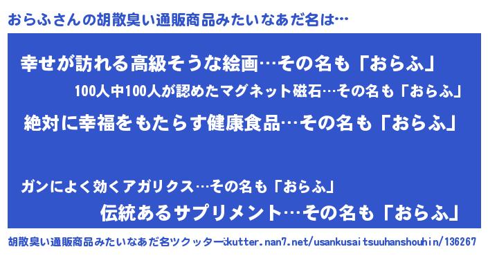 | ヘコむあだ名 | 『おらふ(爆)』『酢こんぶ』『おらお』 |