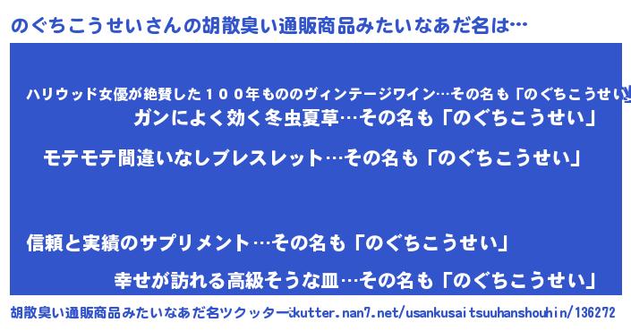 | ヒーロー風カッコイイあだ名 | 『スーパーノグチコウセイ』 |