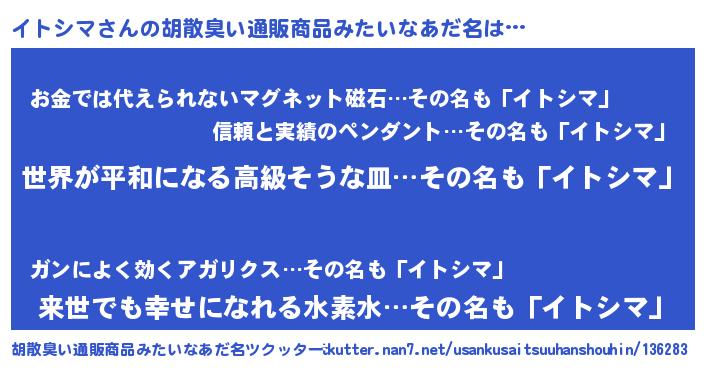| 意味不明あだ名 | 『イトシマフォーエバー』 |