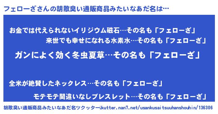 | 意味不明あだ名 | 『自称フェローざ』『ペロリンフェローざ』 |