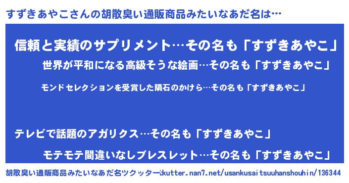 | ヘコむあだ名 | 『すずぷりん』『すずふぇ~』 |