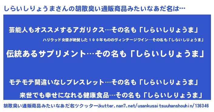 | 意味不明あだ名 | 『とにかく怪しいしらいしりょうま』 |