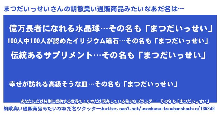 | 男性向けラノベタイトル風あだ名 | 『ダンジョンにまつだいっせいを求めるのは間違っているだろうか』 |