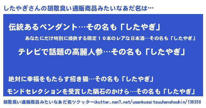 | ヘコむあだ名 | 『したを』『したやぎ(遠い目)』 |