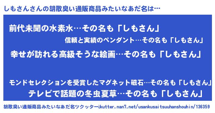 | 意味不明あだ名 | 『しもさんフォーエバー』『自称しもさん』 |