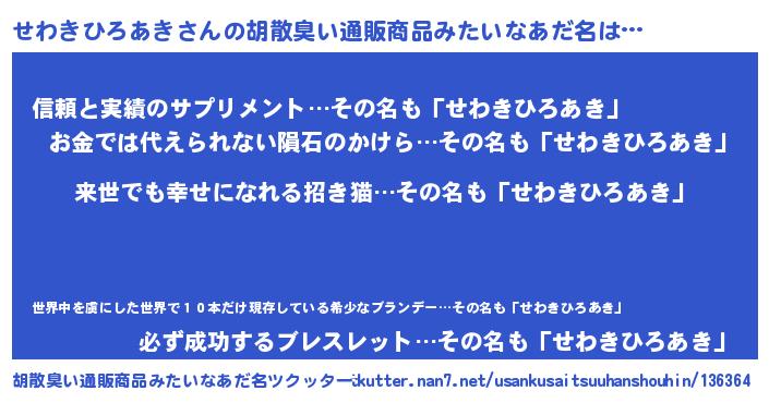 | ヘコむあだ名 | 『せわきひろあき(笑)』『せわを』 |