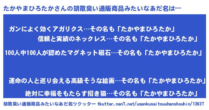 | ヘコむあだ名 | 『たかやまひろたか(小並感)』『たかお』 |