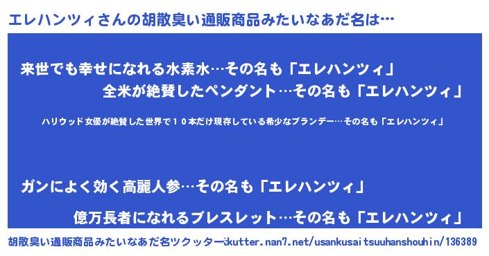 | 意味不明あだ名 | 『住所不定無職エレハンツィ(95歳)』 |