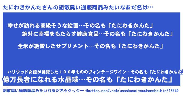 | 意味不明あだ名 | 『とにかく怪しいたにわきかんた』 |
