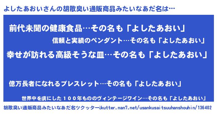 | 欧米人風あだ名 | 『よしたあおいクリステル』 |