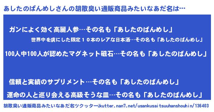 | 欧米人風あだ名 | 『アンジェラ・あしたのばんめし』 |