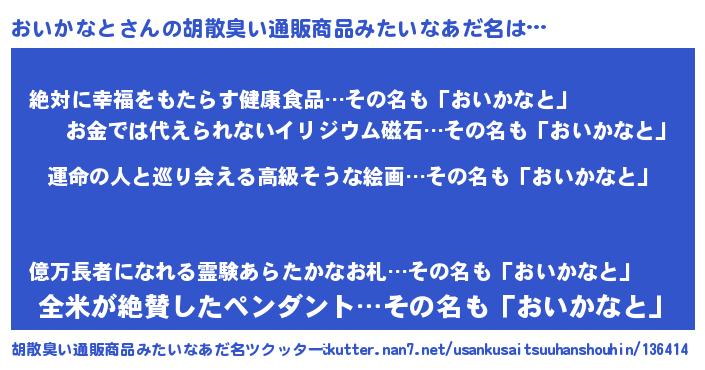 | ヒーロー風カッコイイあだ名 | 『ウルトラおいかなとマン』 |