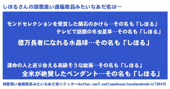 | 意味不明あだ名 | 『ペロリンしほる』『自称しほる』 |