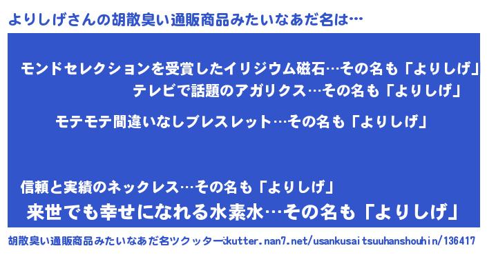 | ヒーロー風カッコイイあだ名 | 『スーパーヨリシゲ』『ネオヨリシゲ』 |