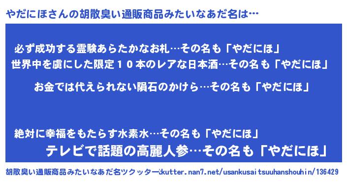 | 欧米人風あだ名 | 『ダニエルやだにほ』『マイケルやだにほ』 |