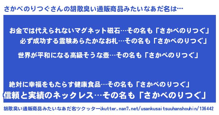 | 意味不明あだ名 | 『さかべのりつぐフォーエバー』 |