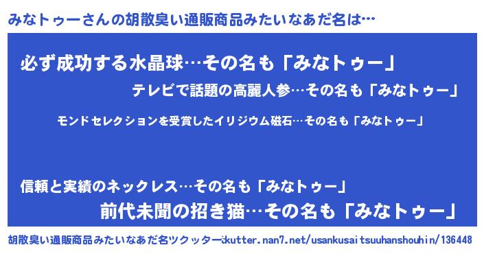 | 意味不明あだ名 | 『眠気覚ましガムみなトゥー味』 |