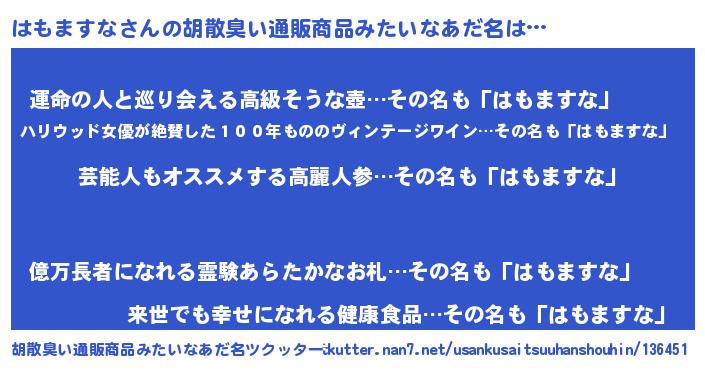 はもますなさんの胡散臭い通販商品みたいなあだ名をツクッター!