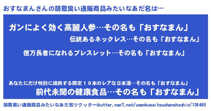 | 男性向けラノベタイトル風あだ名 | 『おすなまんに滅ぼされるだけの簡単なお仕事です』 |