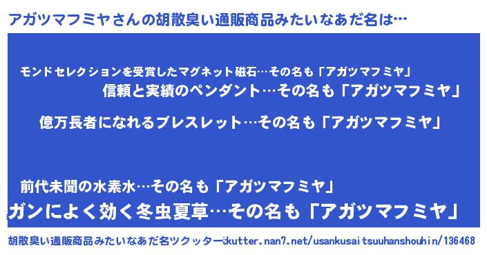 | 肩書あだ名 | 『アガツマフミヤ社長』 |