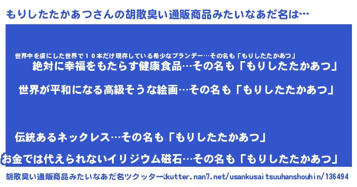 | 意味不明あだ名 | 『もりしたたかあつフォーエバー』 |