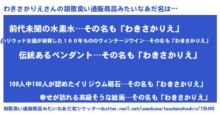 | ヘコむあだ名 | 『わきっちょ』『わきさかりえ(遠い目)』 |